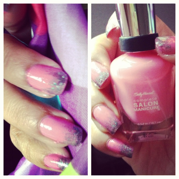 Note: Nail Lacquer used in above photograph #510 I Pink I Can-Sally Hansen & #202 Blue Glitter-Jordana
